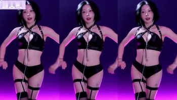 韩国BJ 韩晶 灰黑连体装高开叉热舞