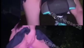 深夜街头户外露出踩单车