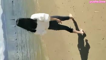 沙滩边露出尿尿,找了个没人的地方口交